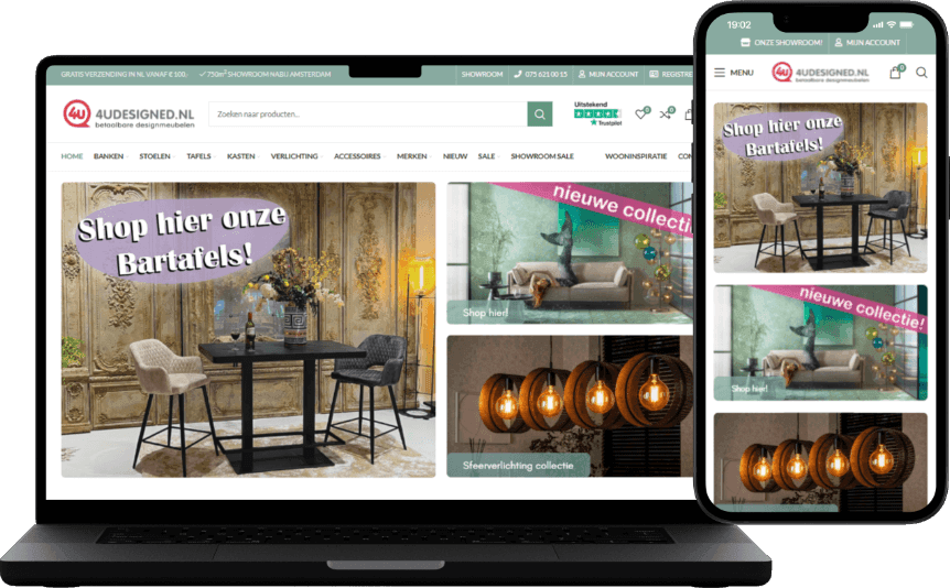 De website van 4UDesigned fungeert als een gebruiksvriendelijk platform waar klanten eenvoudig door het uitgebreide assortiment kunnen navigeren. Met duidelijke categorieën en een efficiënte zoekfunctie vinden bezoekers snel de gewenste producten. Daarnaast biedt de website informatie over de fysieke showroom, inclusief openingstijden en locatie, wat bijdraagt aan een complete winkelervaring.