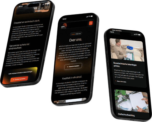 APG Printmedia heeft een overzichtelijke WordPress‑site ontwikkeld die duidelijk de belangrijkste diensten presenteert, zoals grafisch ontwerp, printwerk, in‑ en outdoor reclame en digitaliseringsservices. De website bevat een heldere dienstenpagina met visuele secties en call‑to‑actions voor offerte‑aanvragen, wat de gebruikservaring verbetert en conversies stimuleert.