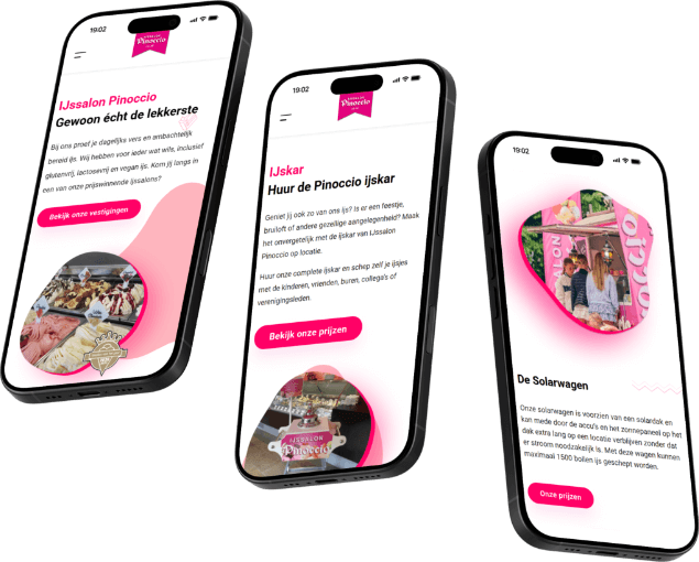 Wil je net als Ijsalon Pinoccio een te gekke website laten maken in Heemskerk of omgeving? Dan helpen wij je graag. Jouw groei, betekent onze groei. Samen succesvoller, dat is waar wij voor gaan. Groei jij met ons mee?