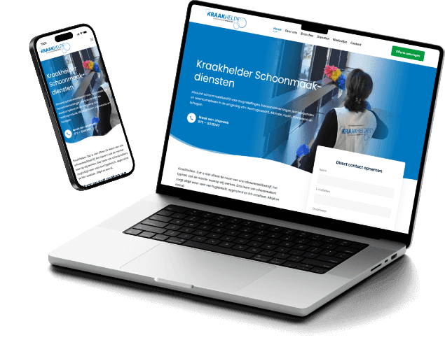 De WordPress-website van Kraakhelder Schoonmaakdiensten biedt een overzichtelijk platform waar potentiële klanten eenvoudig informatie kunnen vinden over de aangeboden diensten en sectoren. Met een geïntegreerd offerteformulier kunnen geïnteresseerden snel een vrijblijvende prijsopgave aanvragen. Daarnaast zorgt het conversiegerichte ontwerp ervoor dat bezoekers gemakkelijk contact kunnen opnemen.