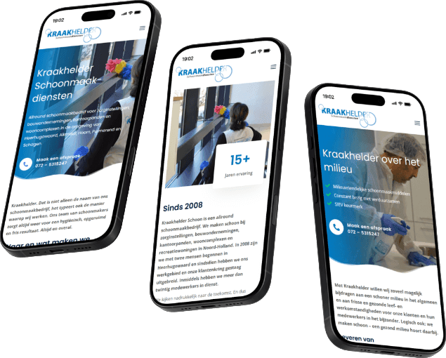 Wil je net als Kraakhelder schoon een te gekke website laten maken in Heerhugowaard of omgeving? Dan helpen wij je graag. Jouw groei, betekent onze groei. Samen succesvoller, dat is waar wij voor gaan. Groei jij met ons mee?