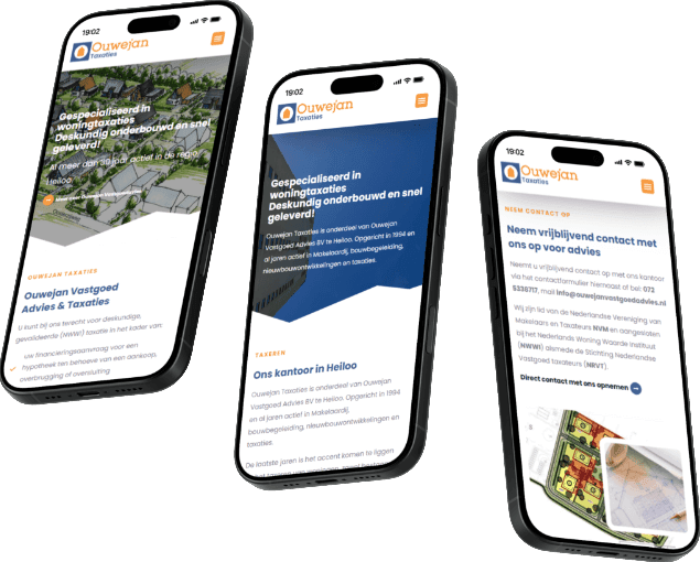 De WordPress-website van Ouwejan Vastgoed Advies is ontworpen om bezoekers een helder en professioneel overzicht te bieden van de aangeboden diensten. Bezoekers kunnen eenvoudig informatie vinden over taxaties, het team en contactmogelijkheden. De integratie van een contactformulier en duidelijke call-to-actions maakt het voor potentiële klanten gemakkelijk om snel in contact te komen voor advies of het aanvragen van een taxatie.