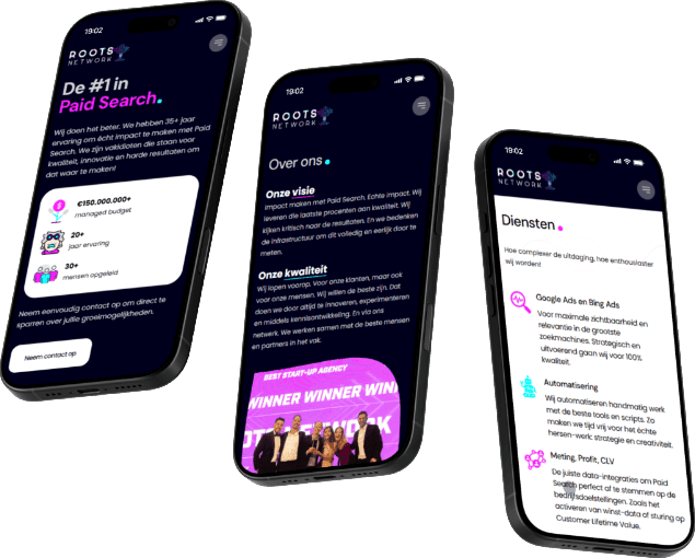 Met meer dan 35 jaar ervaring en een beheerd advertentiebudget van ruim €250 miljoen, richt Roots Network zich op het maximaliseren van online prestaties. Het team in Amsterdam combineert innovatie, automatisering en strategisch inzicht om impactvolle resultaten te behalen.