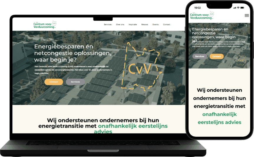 Wij denken actief mee met jouw organisatie. Of je nu actief bent in zonnepanelen, warmtepompen, isolatie, laadpalen, energiebesparing of advies over verduurzaming, we brengen samen helder in kaart wat het doel van jouw website is. Onze webdesigner zal je dan ook vragen stellen als: “Wat wil je bereiken met jouw website als energiebedrijf?” of “Wat moeten bezoekers direct zien of doen op jouw site?” Veelgehoorde antwoorden zijn dan: “Een professionele uitstraling die vertrouwen geeft” of “Meer aanvragen van nieuwe klanten en projecten”.