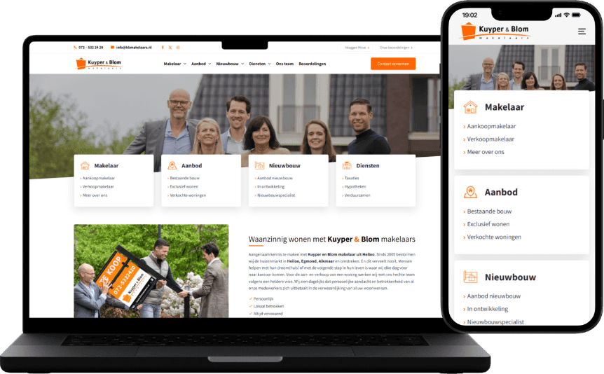 Wil je als vastgoedbedrijf of makelaarskantoor een sterke en professionele website laten ontwikkelen? Ons ervaren team staat klaar om jouw online zichtbaarheid naar een hoger niveau te tillen. We denken actief met je mee, besteden aandacht aan elk detail en richten ons op duurzame samenwerkingen. Jouw succes en groei staan centraal in alles wat we doen. Of je nu werkt als verhuurder, makelaar of vastgoedbeheerder, wij werken niet als een externe leverancier, maar als een betrokken partner die samen met jouw vastgoedbedrijf bouwt aan een sterke toekomst.